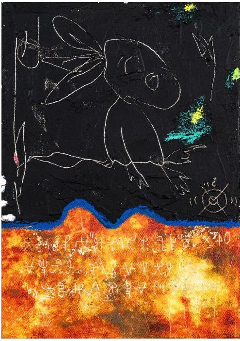 墨汁、京和紙、アクリル、膠(にかわ)Sumi ink, King wo paper, Acrylic, Nikawa glue
