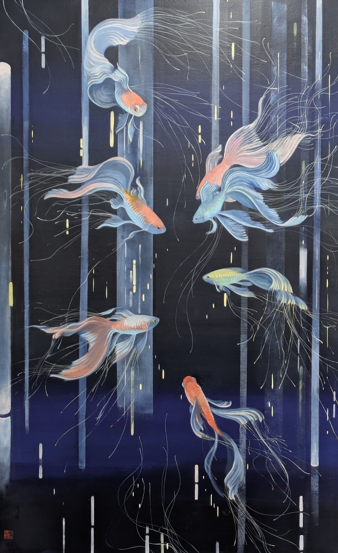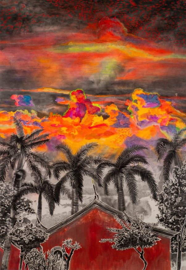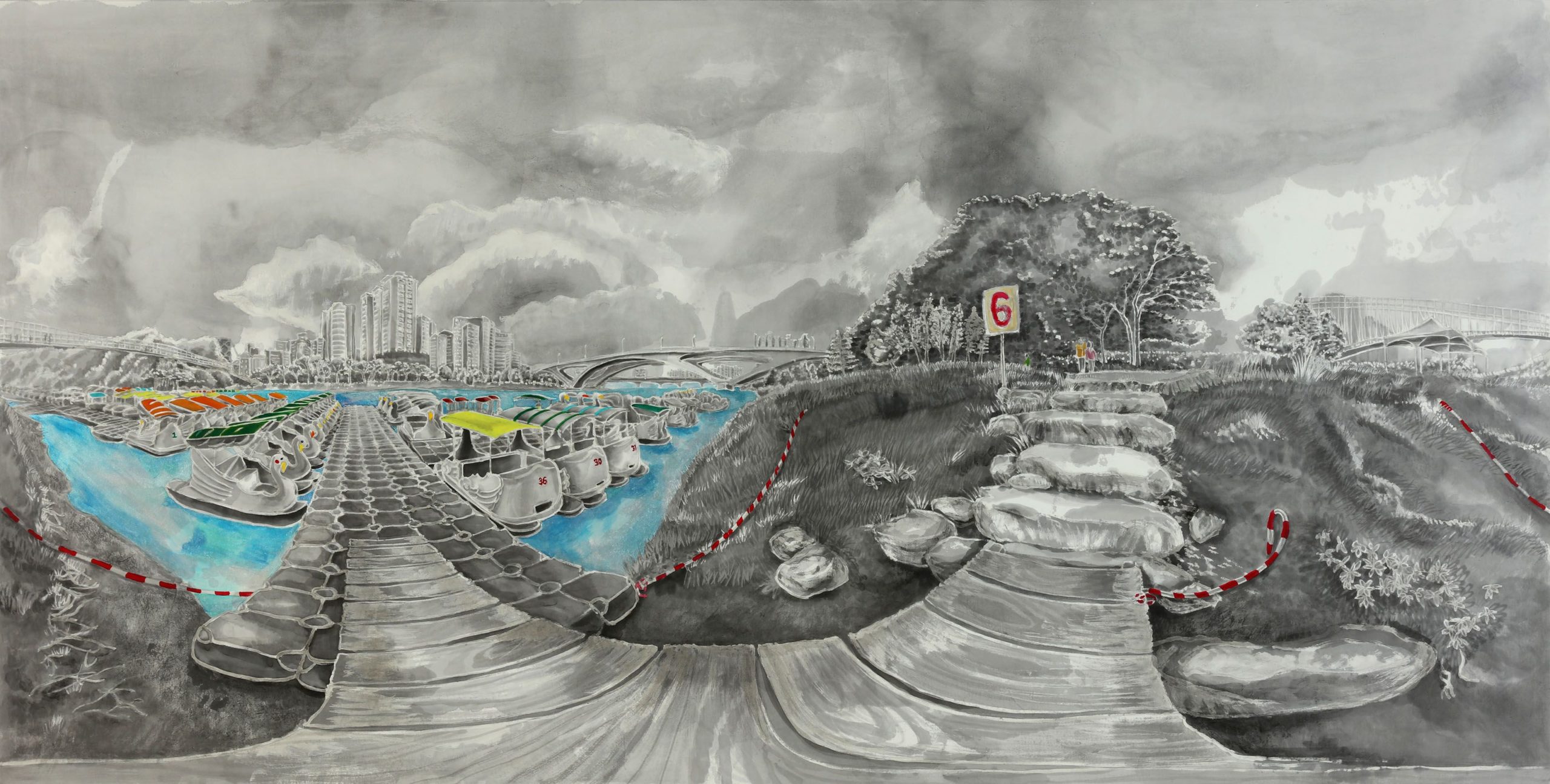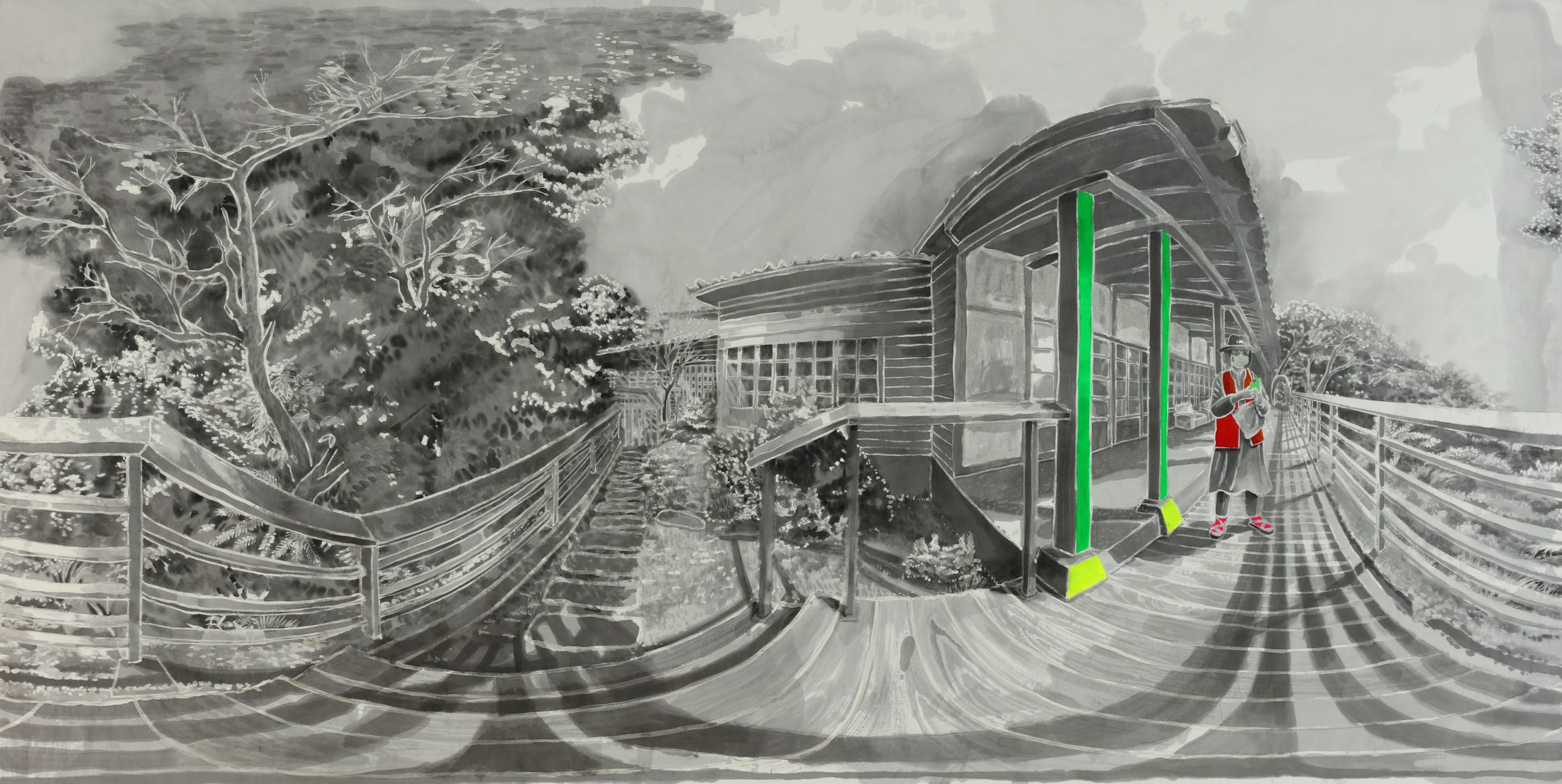 墨汁、紅星宣紙(レッドスター宣紙)、アクリル、膠(にかわ)Sumi ink, Red star xuan paper, Acrylic, Nikawa glue