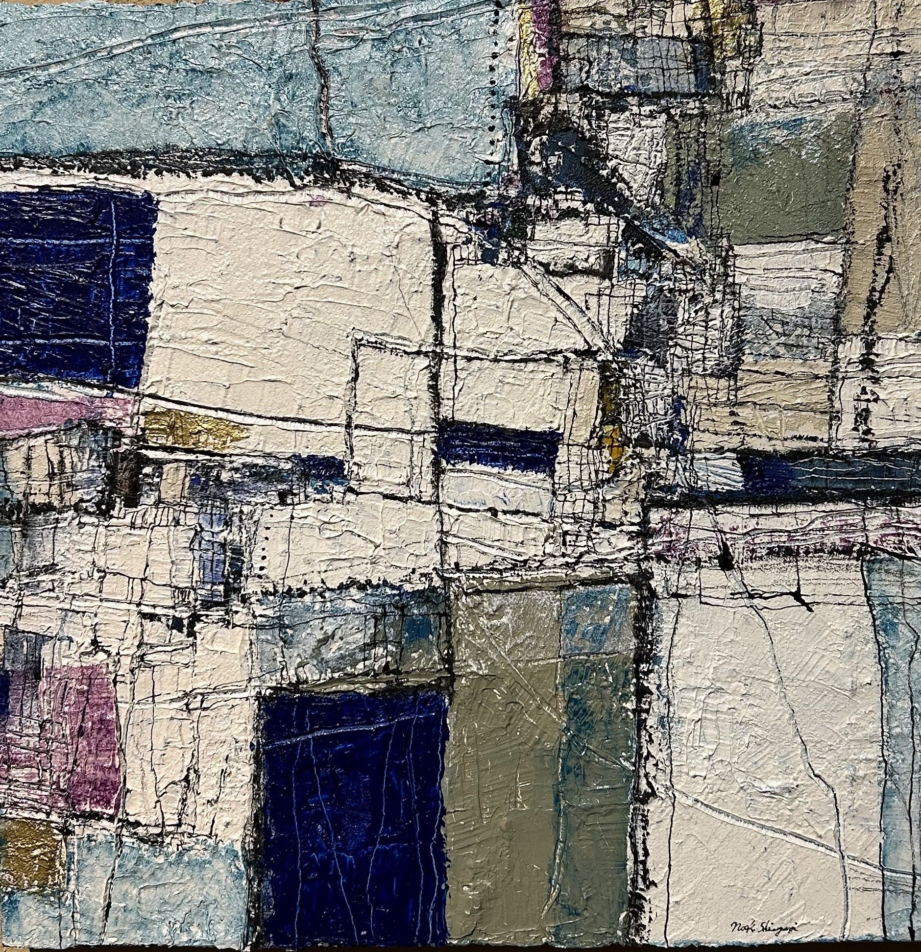 墨汁、京和紙、アクリル、膠(にかわ)、膠彩画用顔料粉 sumi ink, King wo paper, Acrylic, Nikawa glue, Toner