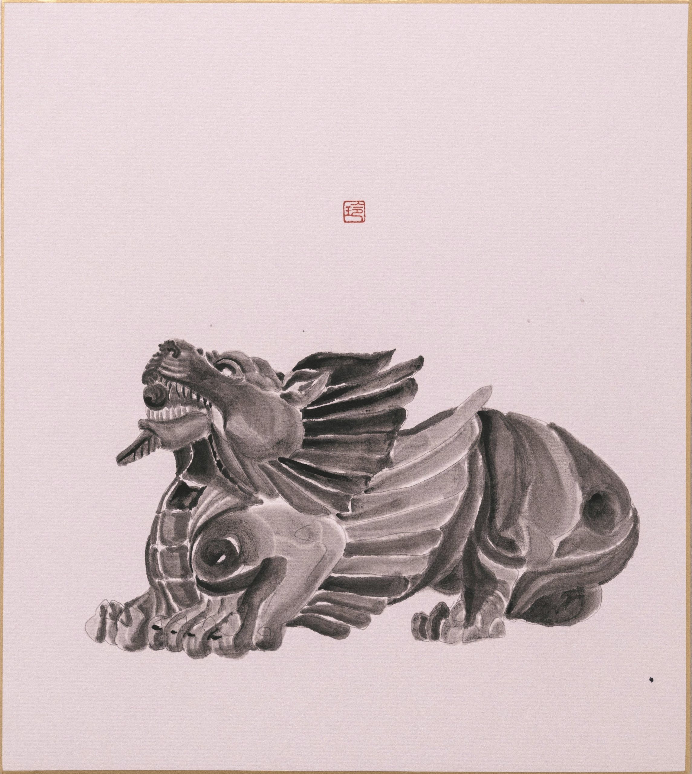 墨汁 紅星古芸宣紙 アクリル 、膠彩画用顔料粉 膠(にかわ) Sumi ink, Red star xuan paper, Acrylic, Toner, Nikawa glue