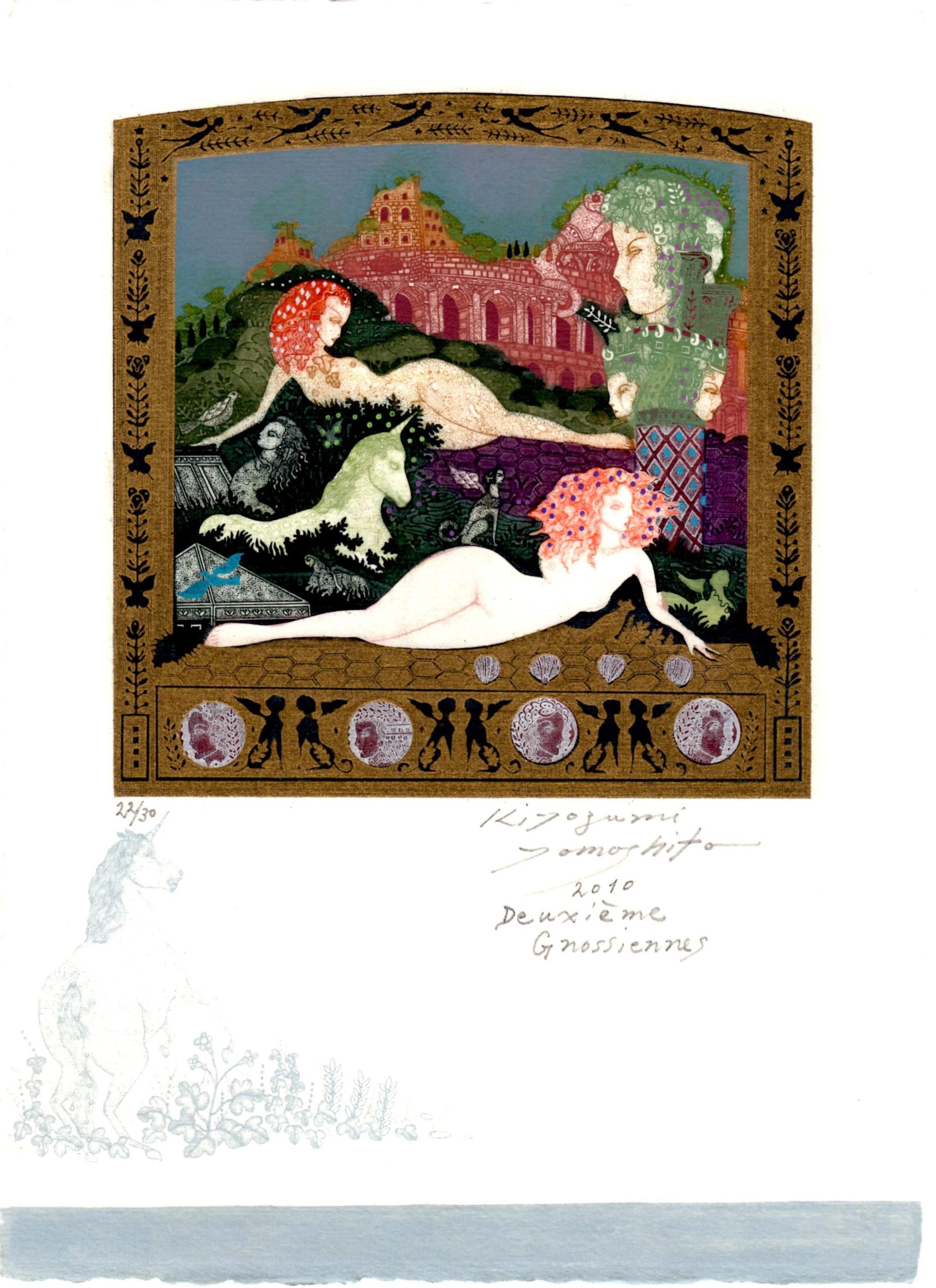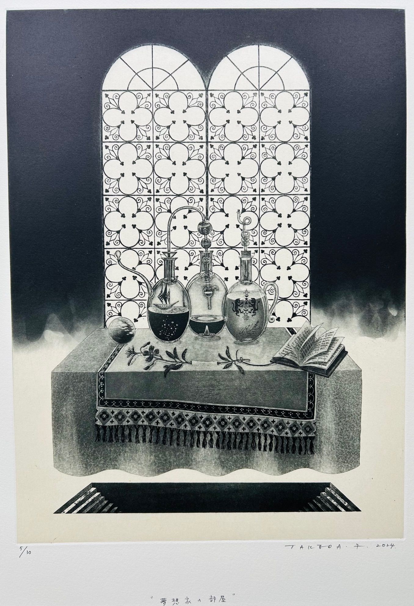 2003年京都左京区の大文字山を眺望できる吉田山中腹に画廊を開設以来、一貫して版画の紹介を手掛けてきました。若手から中堅、さらにベテランまで幅広く版画作家を紹介しています。例えば入江明日香、若木くるみ、宮本承司、西村涼、渡邊加奈子、山田彩加、ベテランでは今村由男、山下清澄などです。版画は様々な版種があり、そのテクニックをマスターしたうえで作家独自の構想力が必要です。版画のテクニックは現代アートで活躍する作家たち(例えばリー・ウーハン)も積極的に取り入れ新鮮な作品を発表しています。今後もこのように版画テクニックを駆使して創造的で魅力的な作品を創る作家を取り上げていきたいと思っています。なお、弊店は地下1階、地上2階の吹き抜けの画廊で、館内中央に天井から釣り下がったガラス張りの収蔵庫があり自由に収蔵作品をご覧いただけますので是非お立ち寄りください。